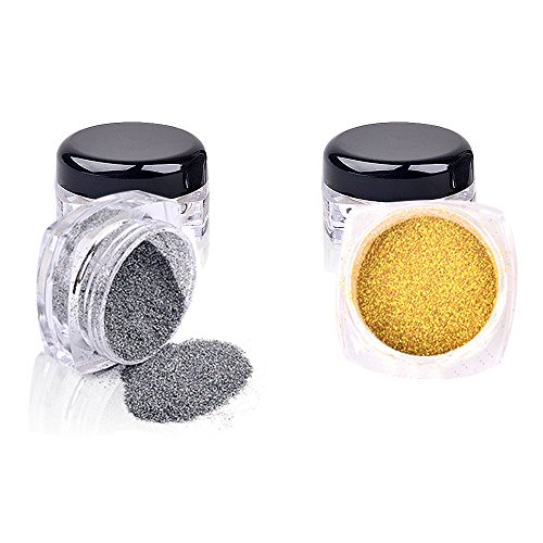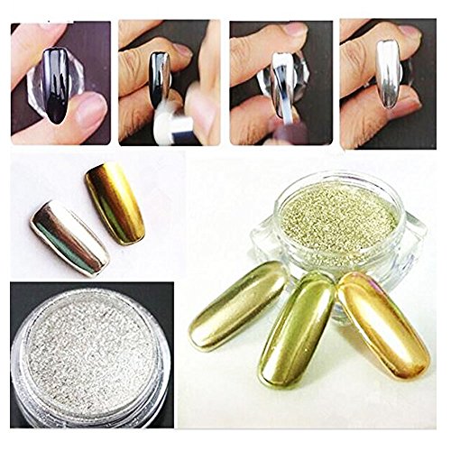 Feature : Shining Nail Powder Hottest trend in the 2016 Summer / 2 pc Gold Silver Effect Nail glitter Dust for Nail Art Decoration with nail sticks for practice / Made different Nail finish with diferrent color nail polish. / Perfect for creating your own custom / Attention:UV/LED lamp, UV base gel and UV gel color needed to achieve chrome nails