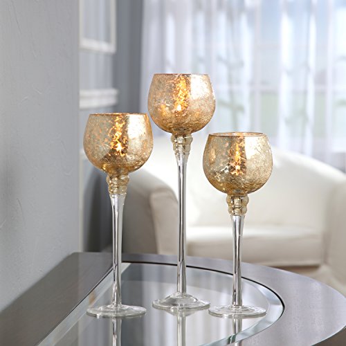 PRODUCT: Hosley's ® Set of 3 Crackle Gold Glass Tealight Holders (9", 10", & 12" High).