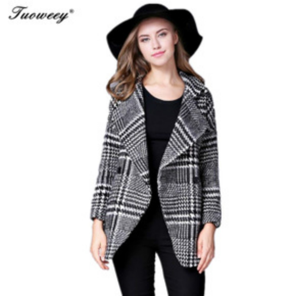オフィス 通勤☆ルーズ グレンチェック ダブルジャケットコート