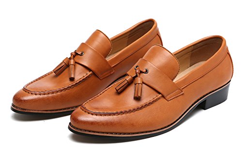 -. Title : Santimon Dress Shoes Men Modern Tasseled Slip-on Loafers Slipper Pointed Toe Oxfords Black Red Tan