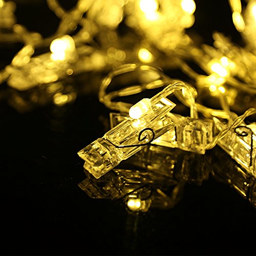 Innovative Design -- 40 clear photo clips. Each photo-clip contains an LED that emits a warm white light, LED light and clip are separable.