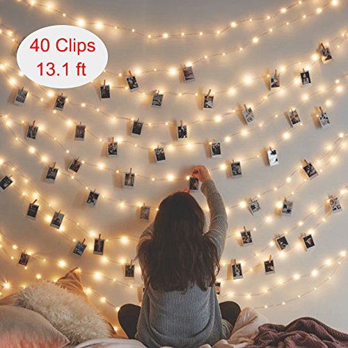 led fairy lights battery operated string lights, 40 LED 13ft Battery Powered Lights with photo clips for Bedroom Wedding Party Christmas Propose Home Decor battery Lights for Hanging Cards and Artwork