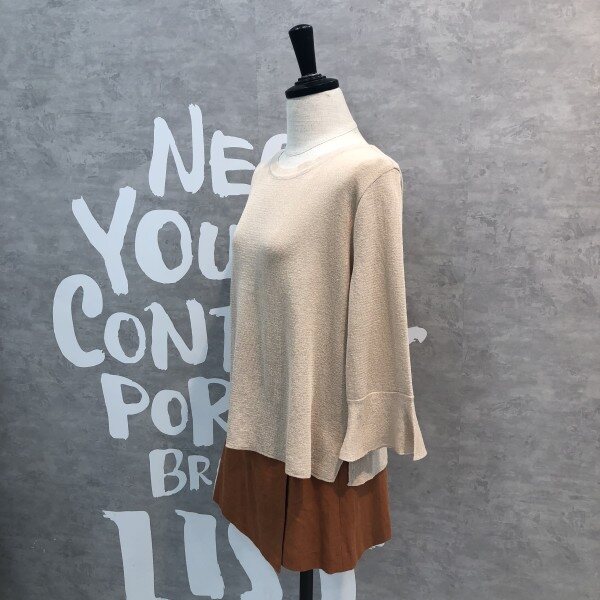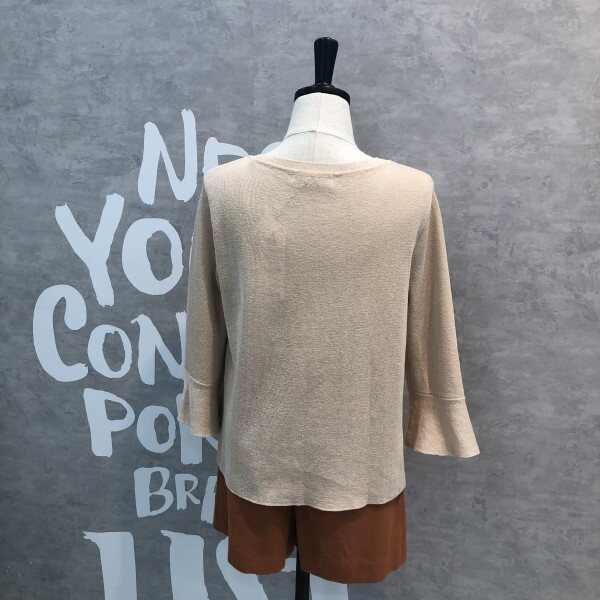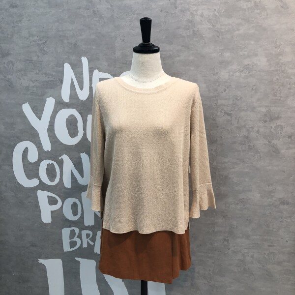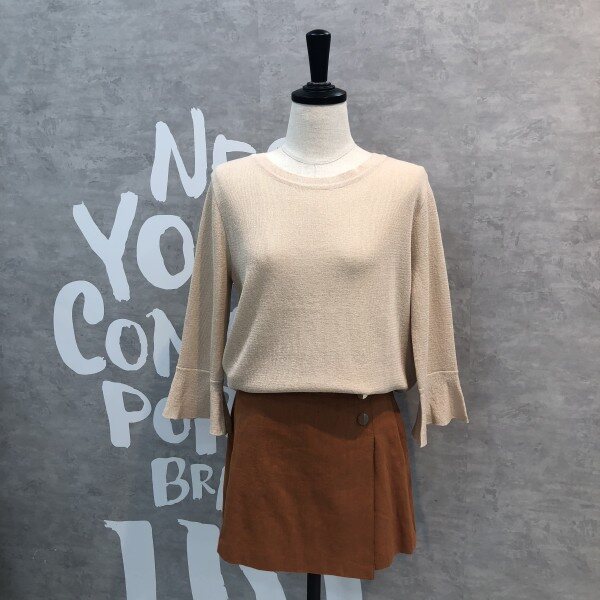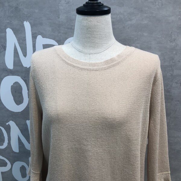 심플한 라운드형의 여성스럽고 단아한 분위기를 느낄수있는 러플소매 포인트 니트입니다