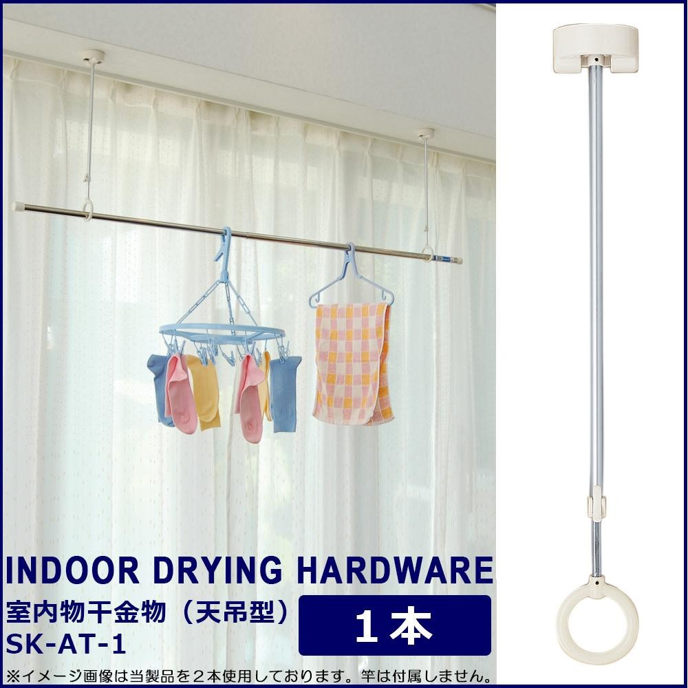 | 使用しない時には、物干ポール部分を取外し、掛け金具に掛けてください。取付天井部分には下地が必要です。2本使用の場合は水平天井に設置してください。 |