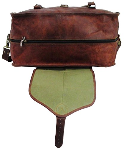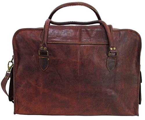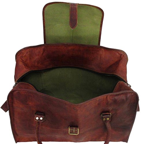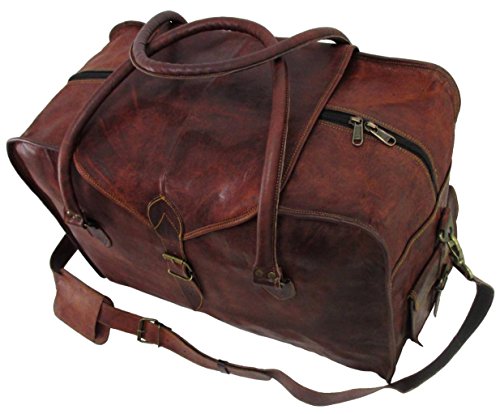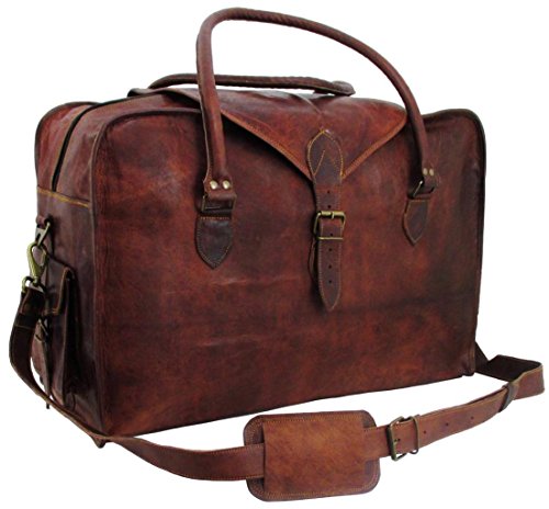 -. Brand : Genuine Leather Bag Shop -. ClothingSize : 21 inches -. Color : Brown -. Department : mens -. Feature : Dual Exterior End Pockets . Protective Leather Flap Across the Top . Full Length Zipper Closure Under protective Flap . Antique Brass Hardware . Spacious Interior . Fully Lined with Sturdy Green Canvas / 21 / Leather has been naturally processed and tanned without the use of chemicals to give each hand crafted bag a rich, rustic, vintage look and feel. The natural variation in leather as well as hand finishing gives each bag a unique texture and color tone, no two bags will look exactly the same. / Leather characteristics, as well as scratches and small scars are evidence of leathers natural beauty and should not be considered defects. Leather has been hand rubbed with vegetable oil which provides a natural resistance to water. New leather odor fades within 4-6 weeks of regular use. / Strong . Durable . Supple . Light weight . Naturally Distressed . Vintage Style . Hand Crafted . Hand Sewn . Prompt Next Day Shipping from Portland, Oregon -. Model : VTB 1050 SQ 21x13x9 -. NumberOfItems : 1 -. PackageQuantity : 1 -. ProductGroup : Apparel -. ProductTypeName : LAGE -. Size : 21 inches -. Title : Genuine Leather Bag Shop 21"x13x9 Vintage Carry On Travel Duffel Shoulder Suitcase