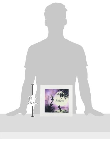 3dRose qs_35696_1 Believe, Fairy with Dragonflies with Moon and Purple Sky-Quilt Square, 10 by 10-Inch