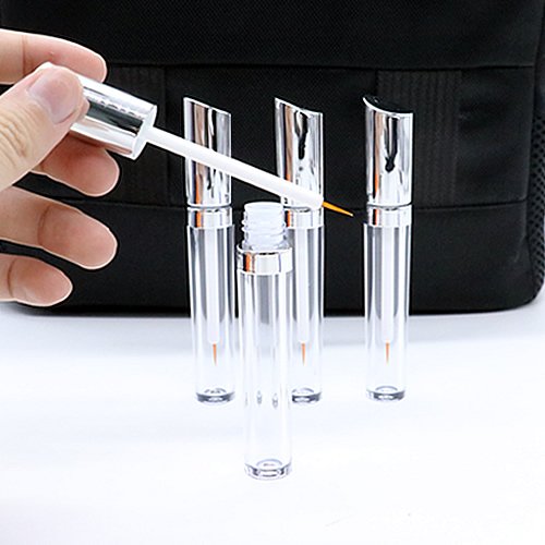 IDS 4PCS 5ml Silver Acrylic Empty Eyelashes Tube Eyeliner Vials Bottle With Wand Applicators for Eyelash Eyebrow Growth Serum Castor Oil
