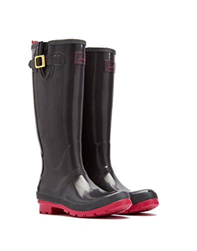 Make a splash with the Joules Fieldwelly Women's Rubber Rain Boots. These rain boots feature: made of waterproof rubber, printed rain boot featuring logo on shaft and expanding inset with adjustable buckle strap, pull on loop at back shaft and lugged rubber outsole, full print inside lining with removable cushioned insole. Joules is a British fashion and lifestyle brand that sells clothing, footwear, accessories and home products inspired by British country lifestyles. In 1989 Tom Joule established Joules.Feature