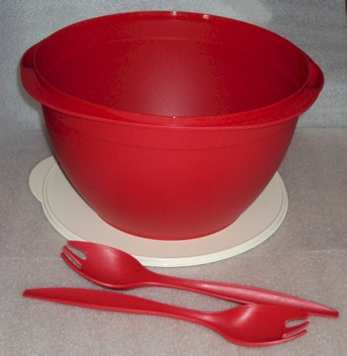 -. Title : Tupperware Maxi Salad 42 Cups Bowl with Serving Forks Red
