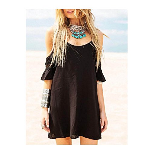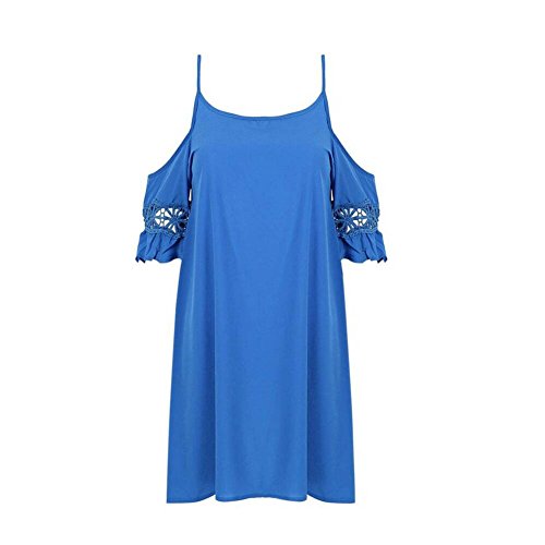 -. Title : Liujos Women Cold Shoulder Lace Trumpet Sleeve Spaghetti Strap Dress Top