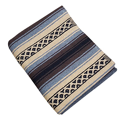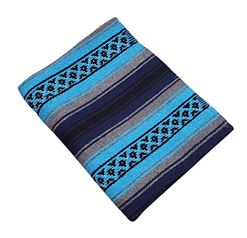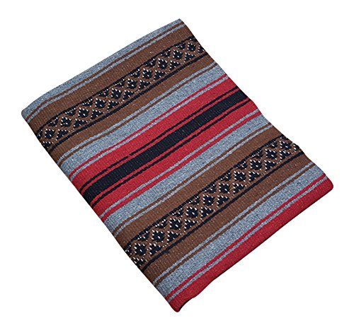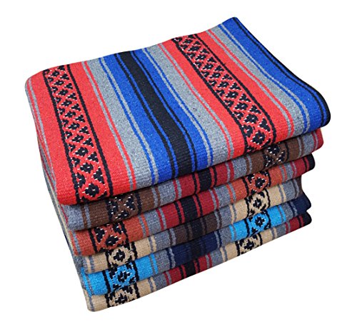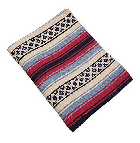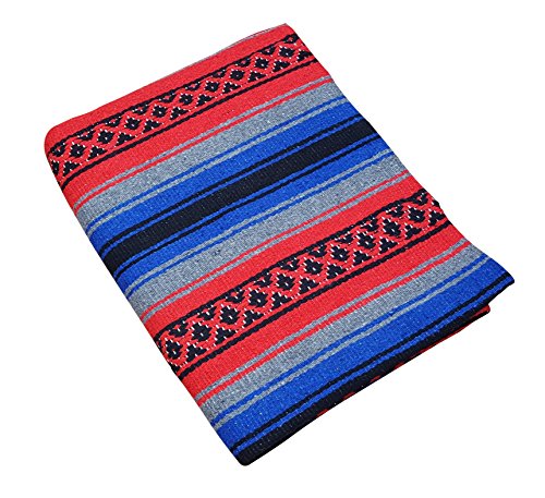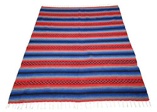 Beautiful hand woven falsa blanket designed with classic falsa stripe pattern. Features white tassels on ends of blanket. Hand crafted from heavy acrylic yarn. Measures 57 in x 74 in. Ideal Heavyweight yoga blanket, throw blanket, or bedspread. Weighs 3.4 pounds. Machine wash gentle in cold. Hang to dry.Feature