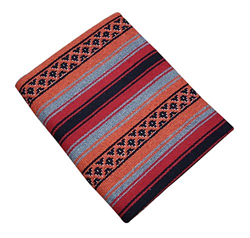 Heavy Throw Blanket in Classic Mexican Falsa Serape Stripe Pattern.