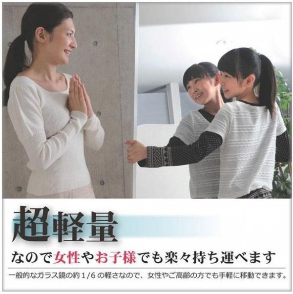 | 素材・材質 | 鏡面:ポリエステルフィルム フレーム:アルミニウム 芯材:硬質ウレタン 飾り縁:アルミニウム スタンド:スチール |
