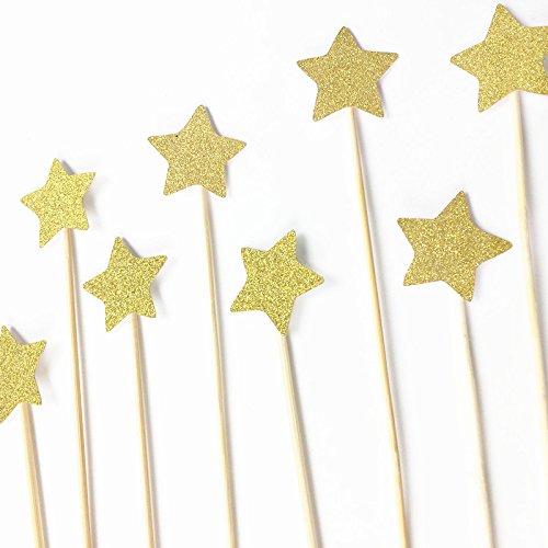 DLOnline 50Pack Cupcake Topper Gold Glitter Star Cakes Toppers
