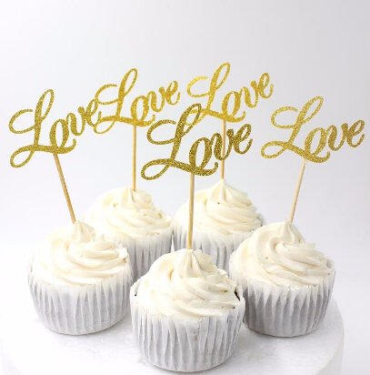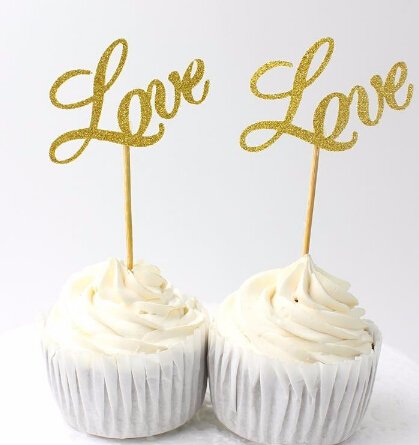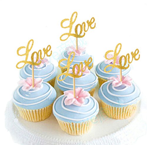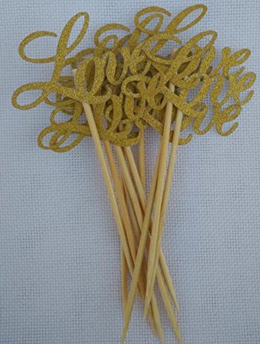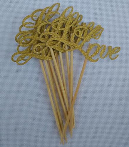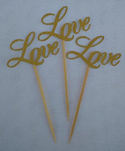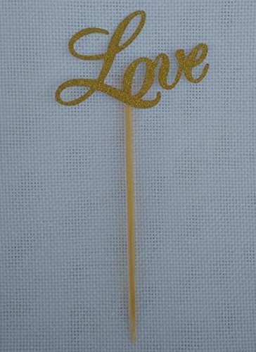 10 Pack Glitter Gold "Love" Cupcake Toppers for Party Weddings Birthday Parties Decorations