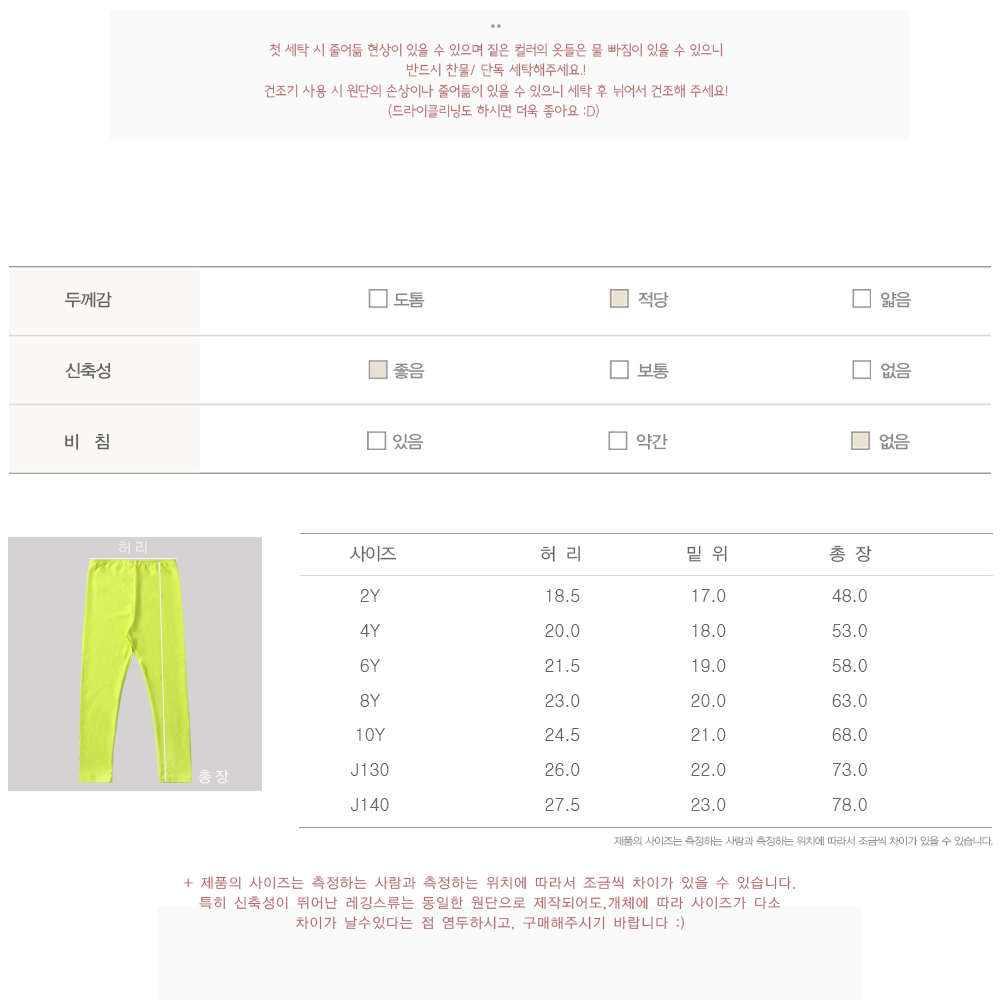 다리에 착 감기는 듯한 착용감과 핏으로 제작된 레깅스라 쫀쫀한 느낌이 입었을 때 편안한 느낌을 주며 다리라인이 매우 예뻐보이는 제품이에요