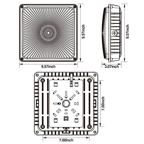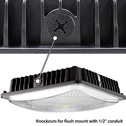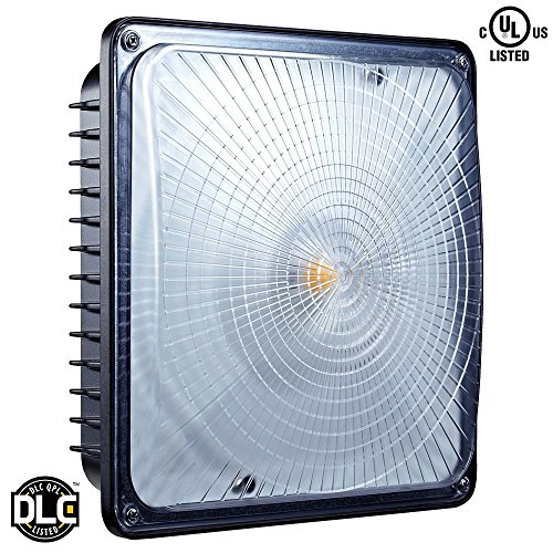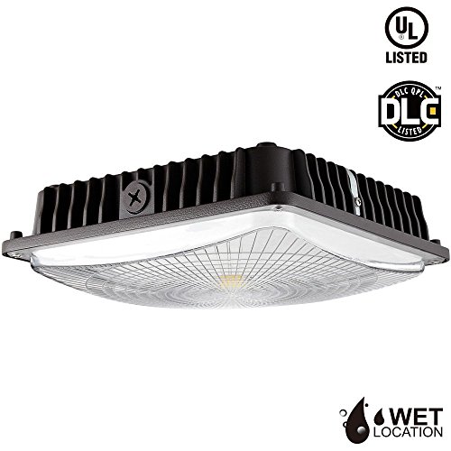 Leonlite LED Canopy Light, 65W (300W-350W MH/HID Replacement), 5000K Daylight, 6700 Lumens 9.5” x 9.5” Floodlight, UL Listed for Area Lighting, Wet Location Available, 5 Year Warranty