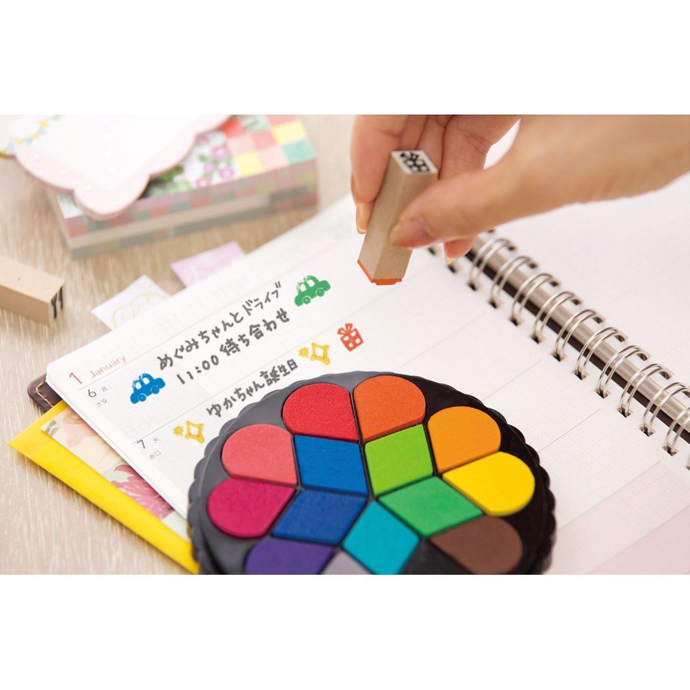 - The ink on the rubber stamp surface can be wiped off with a tissue moistened with water, so it is easy to change colors and care.