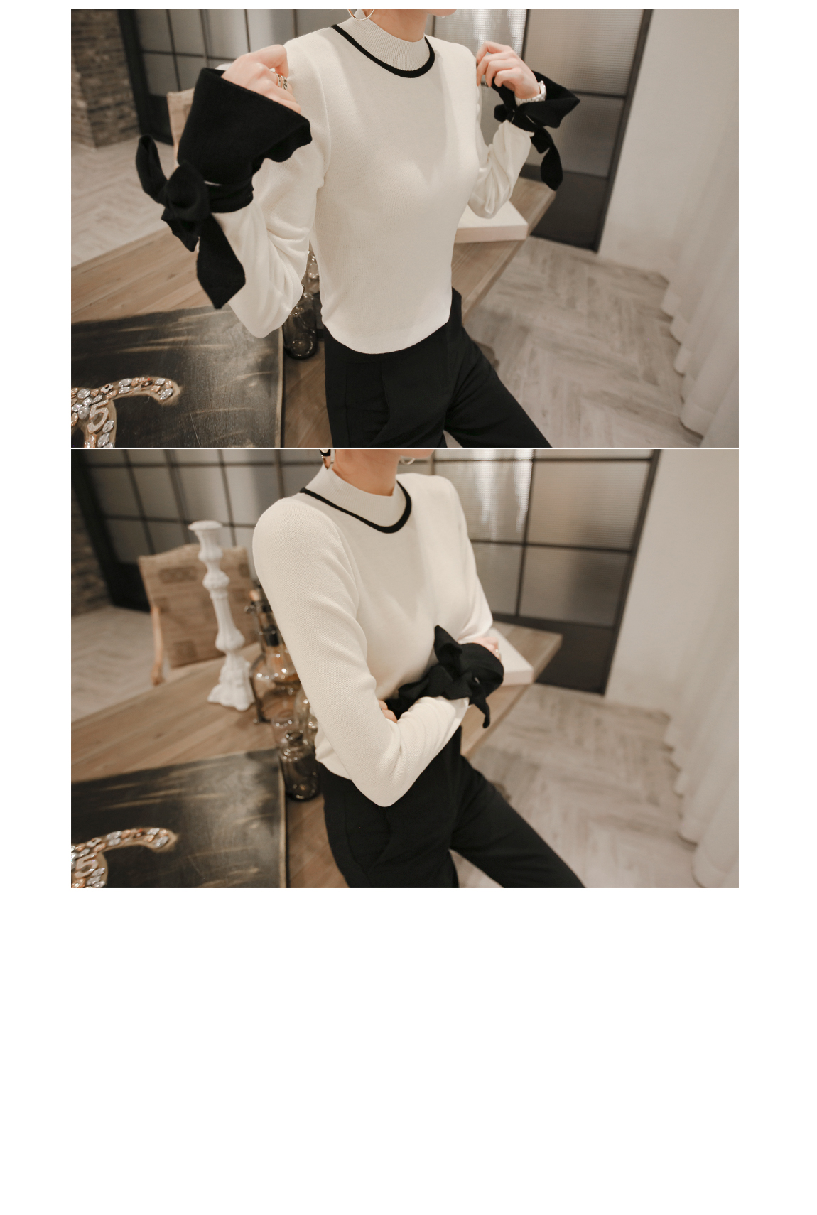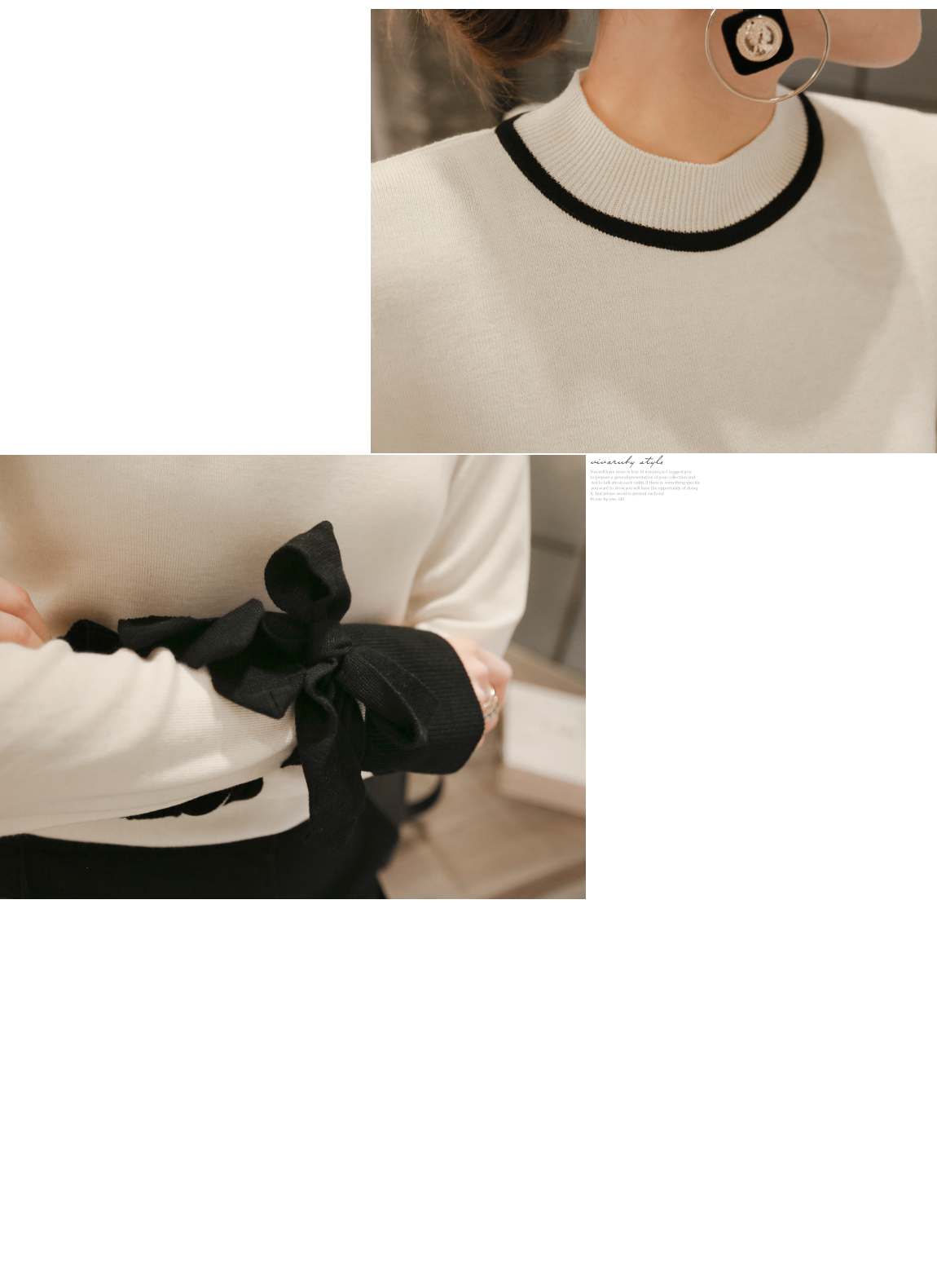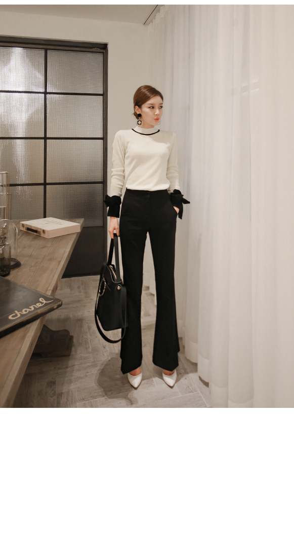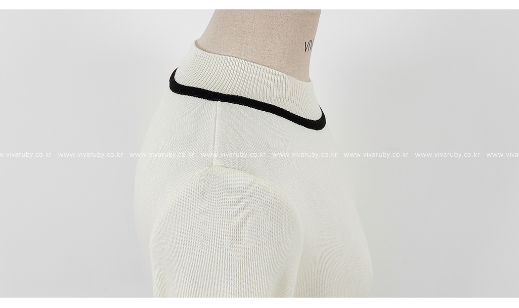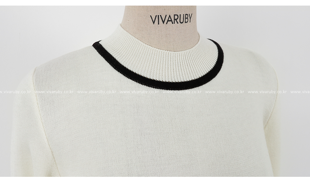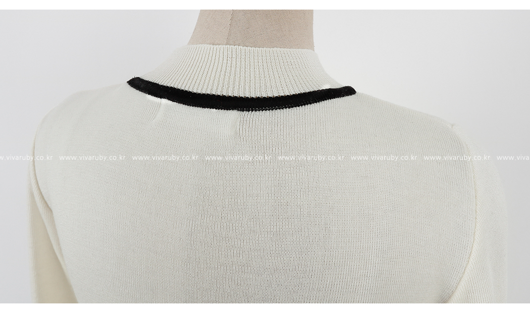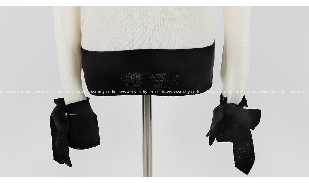 の裾とカフスにカラーの配色でポイントをつけたニットです