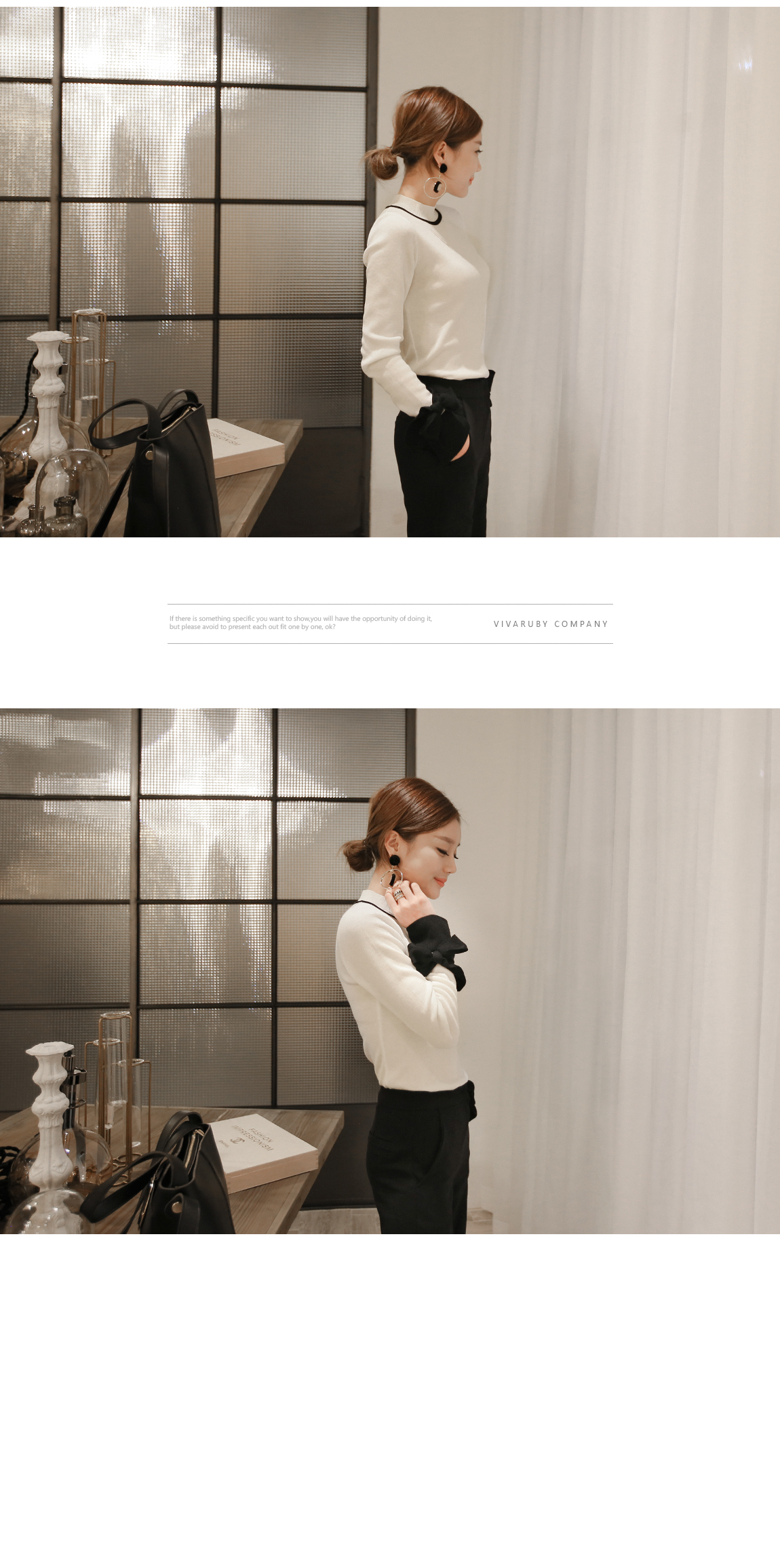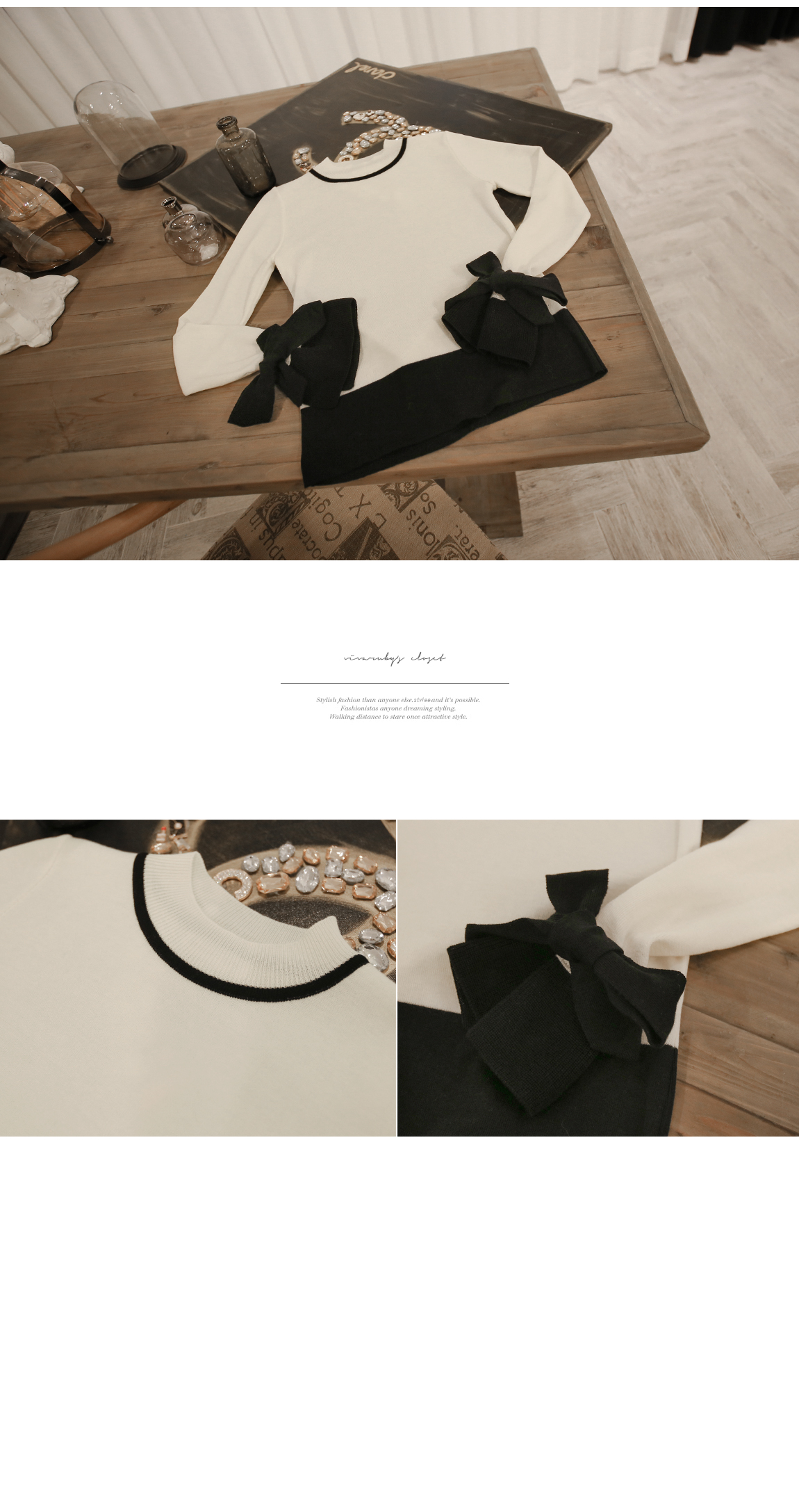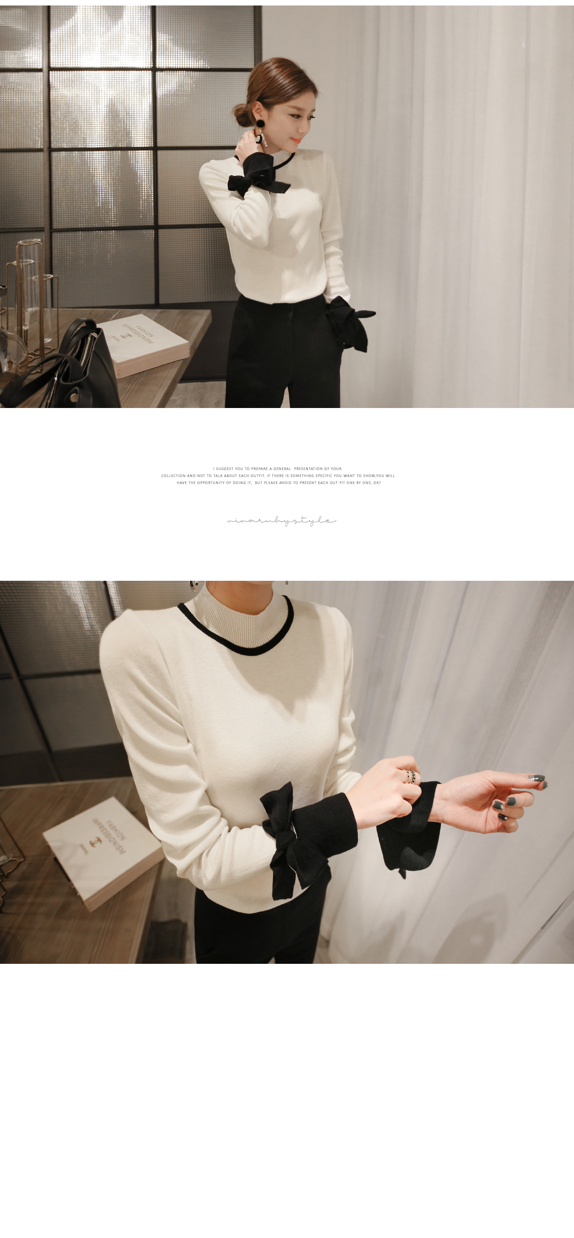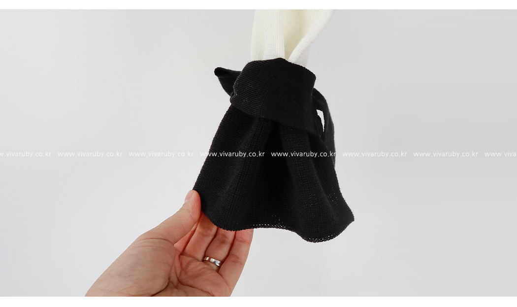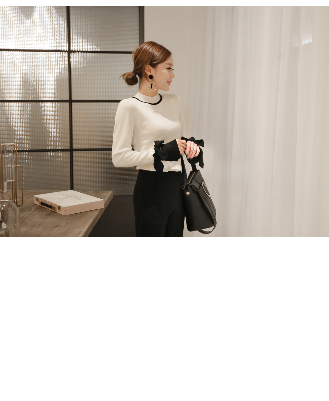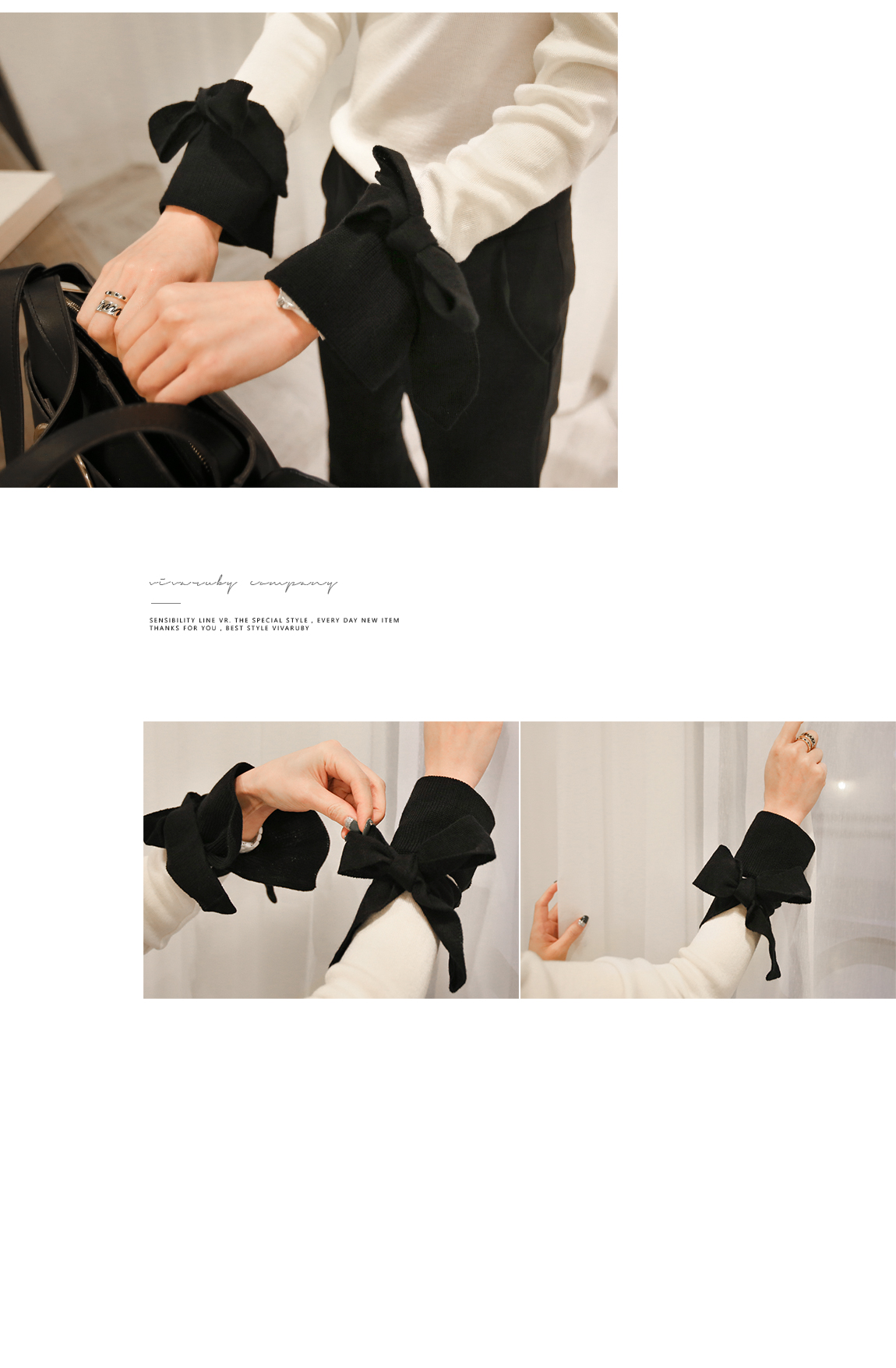 の裾とカフスにカラーの配色でポイントをつけたニットです