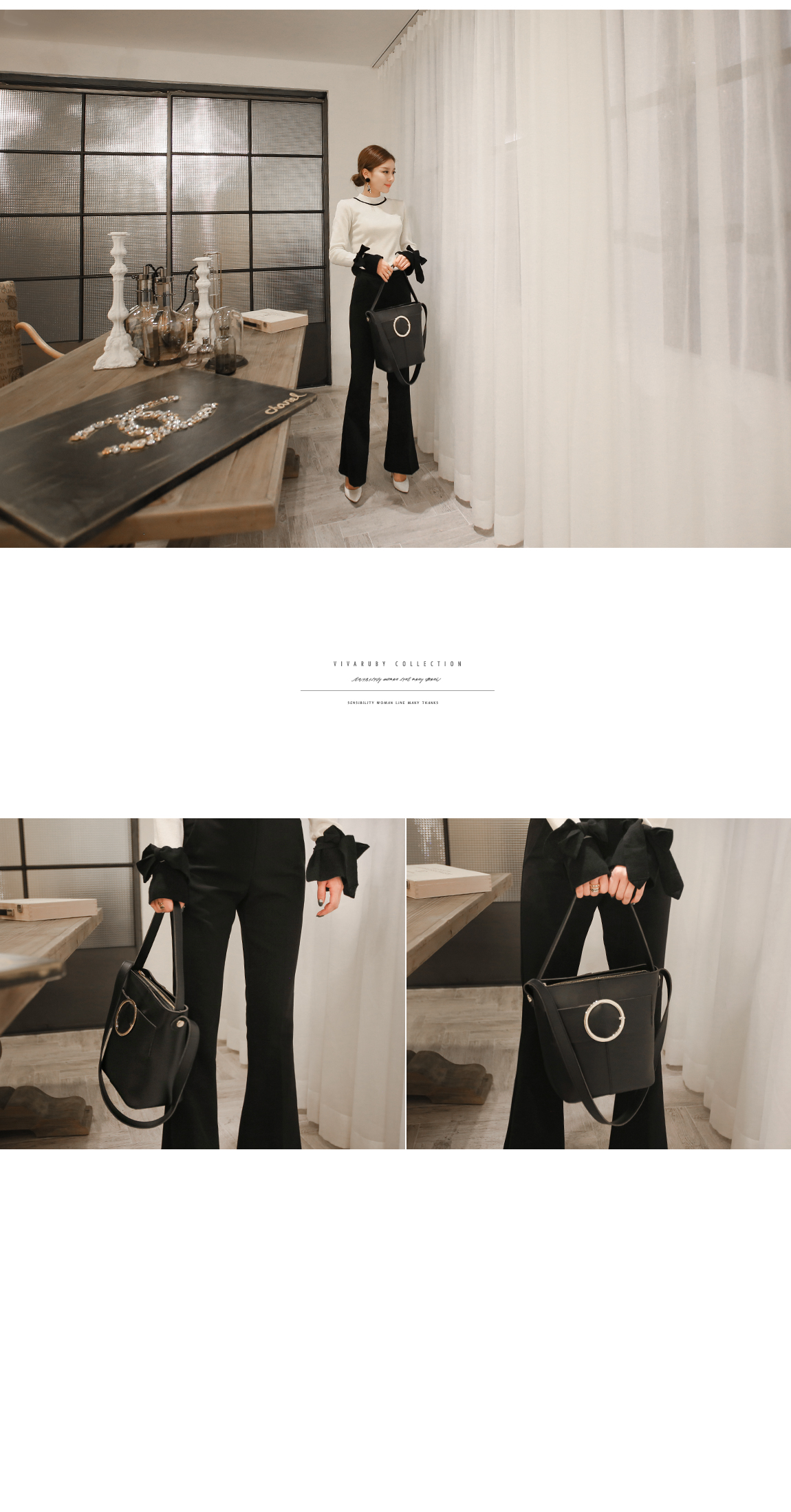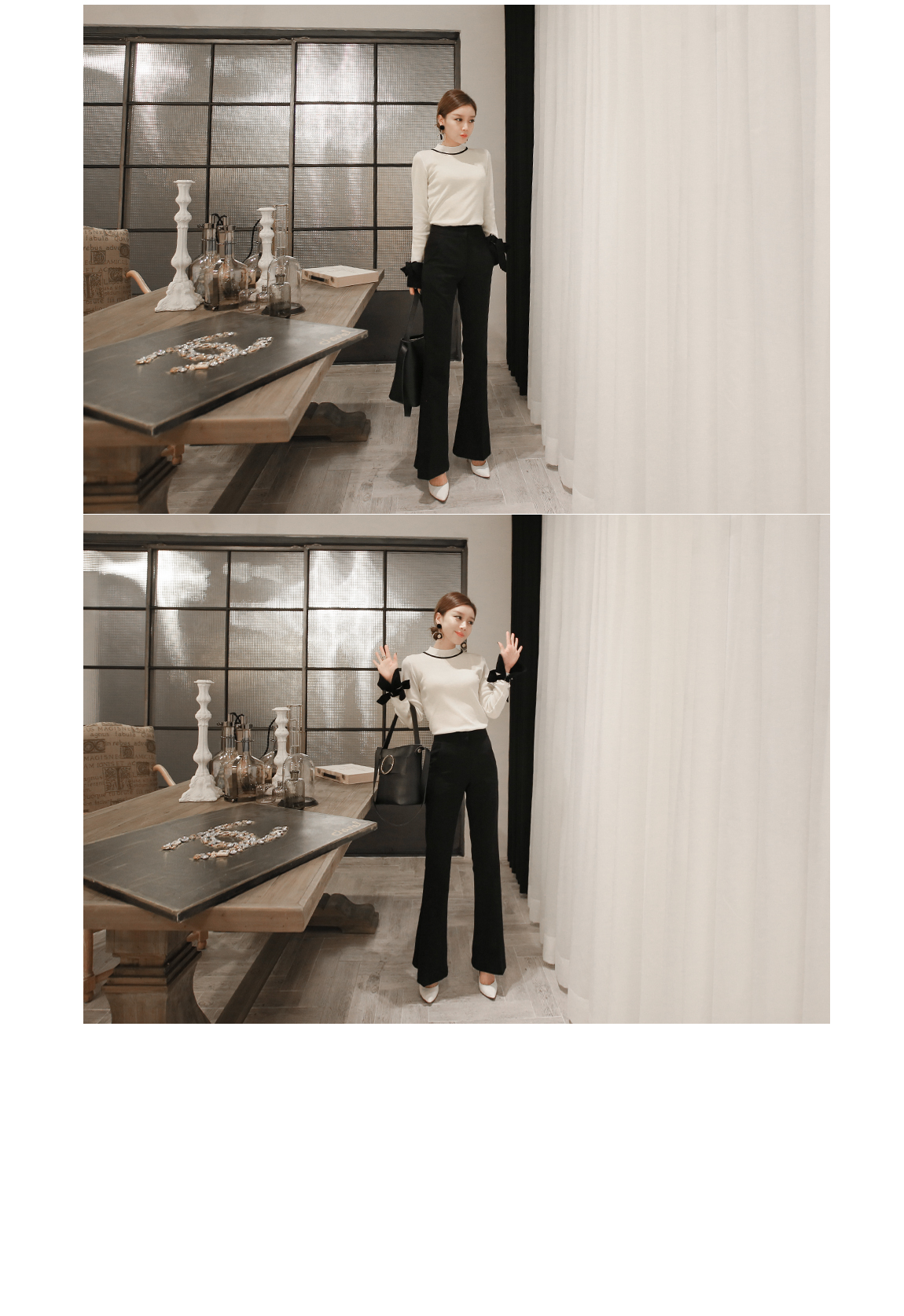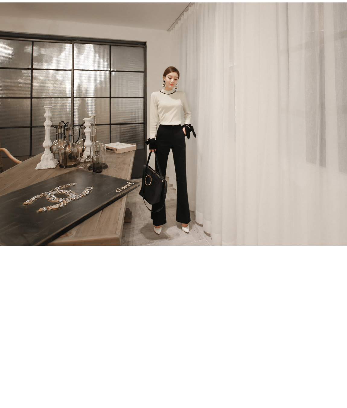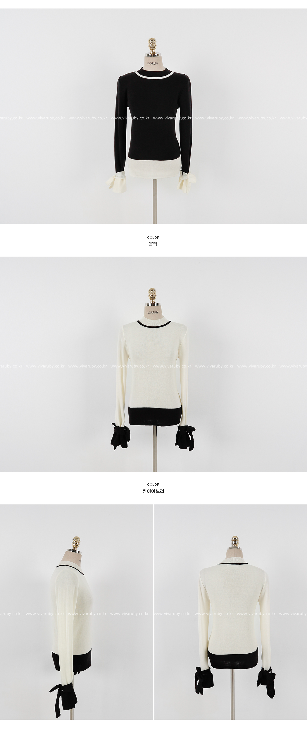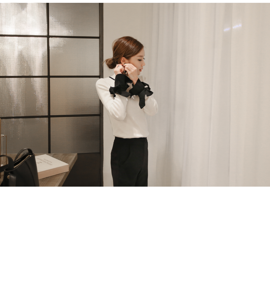 の裾とカフスにカラーの配色でポイントをつけたニットです