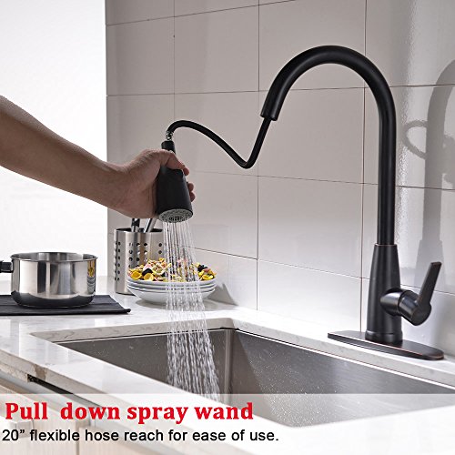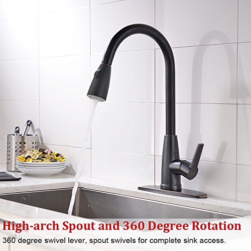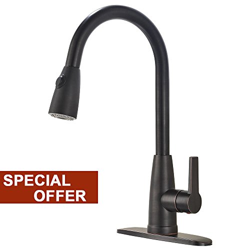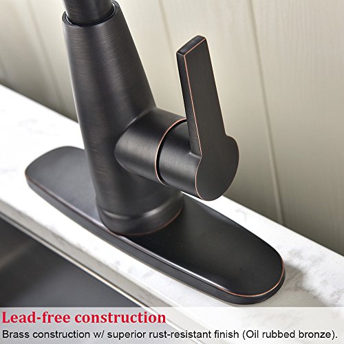 Lead-free Antique Oil Rubbed Bronze Stainless Steel Pull Down Sprayer Single Lever Handle Kitchen Sink Faucets, Kitchen Sink Faucet With Deck Plate