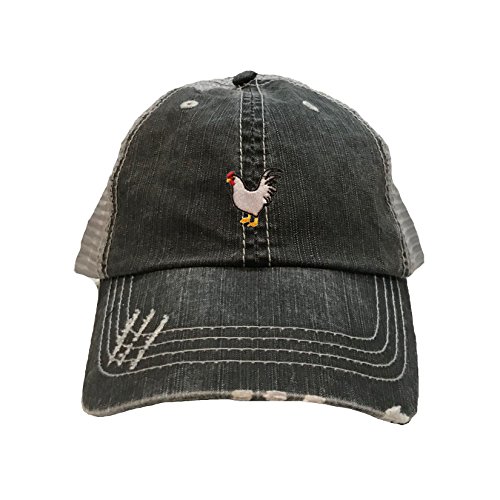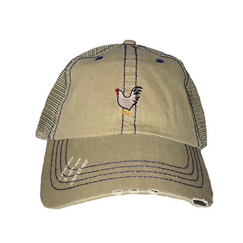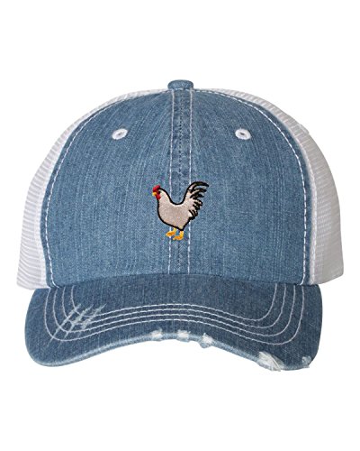 | (Go All Out Screenprinting)/Accessories/Hats/DIRECT FROM USA/Go All Out Screenprinting Adult Chicken Embroidered Distressed Trucker Cap |