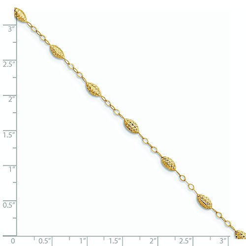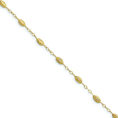 14k Yellow Gold Puff Rice Bead With 1inch Ext Anklet - 1.5 Grams in 14k Yellow Gold - JewelryWeb Style: QTA213025Y - FREE gift-ready jewelry box