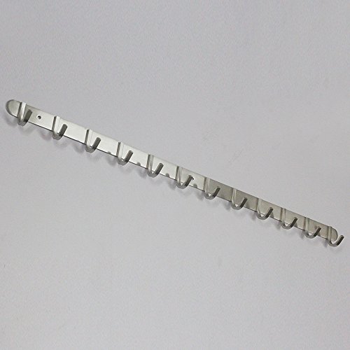 Hook/Coat Rack with 12 Square Hooks- Modern Wall Mounted - Ultra durable with SOLID STEEL construction, Brushed stainless steel finish, Super easy installation, Rust and water proof.