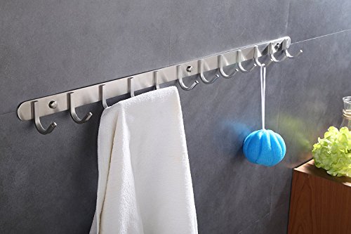 - MODERN APPEARANCE - Each PREMIUM Wall Mounted Hook Rack has our Modern design, with solid 304 stainless steel, beautiful round hooks making it the perfect rack for your home, office or industrial environment. Our PREMIUM Hook Rack is brush finished and have hidden mounting plugs.