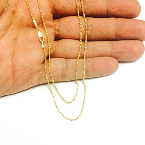 14k Yellow Gold Round Diamond Cut Wheat Chain Necklace, 1.15mm, 18"