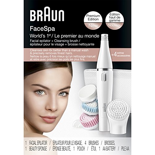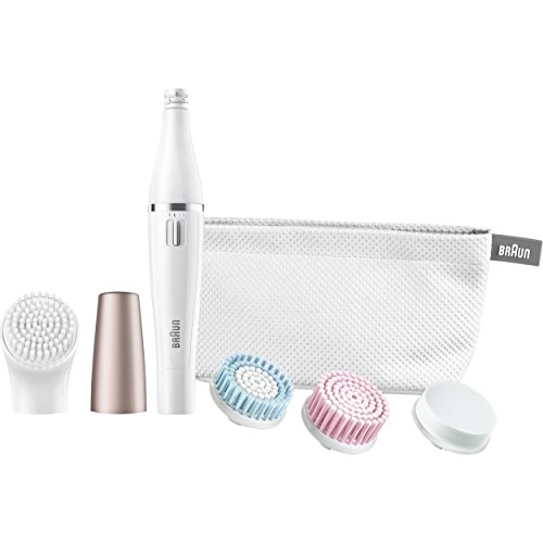 Braun Face 851 Women's Miniature Epilator, Electric Hair Removal, with 4 Facial Cleansing Brushes and Beauty Pouch