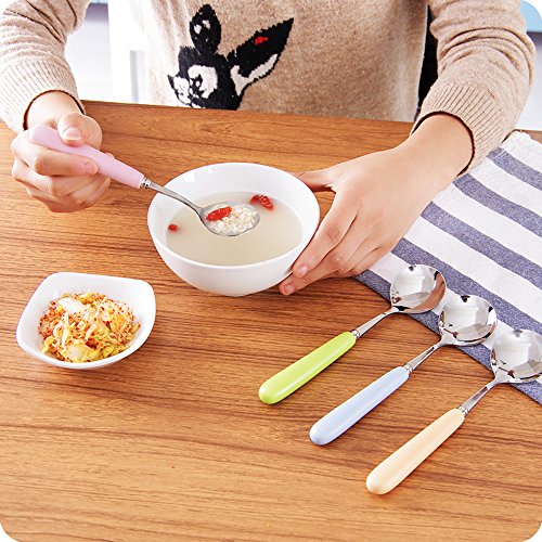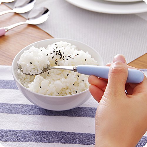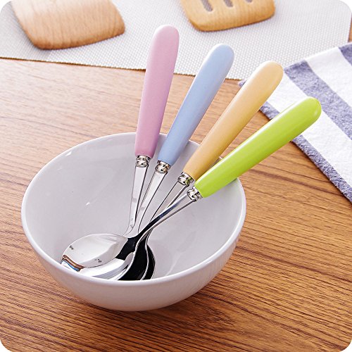 XDOBO Mixed Colors High Quality Stainless Steel Coffee Tea Dessert Soup Stirring Spoons, with Long Porcelain Handle, 7-Inch (4-pack)