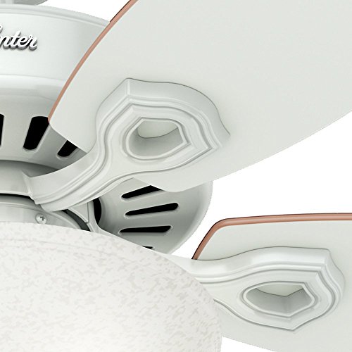 Hunter 53089 Builder Deluxe 52-Inch Ceiling Fan with Five White/Beech Blades and Snowflake Linen Glass Light Kit, White