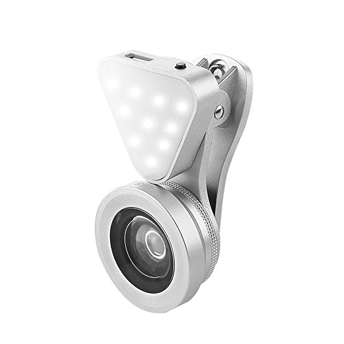 A) Catch that desired glow, adjust the fall and manage the angle of shadows with this clip-on lens with beauty lights. Camera flashes may emit and cause harsh shadows to appear behind the subject. However, using this clip-on lens with LED light you can take photos with a more natural look at any time of the day!