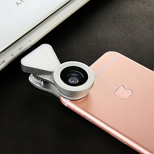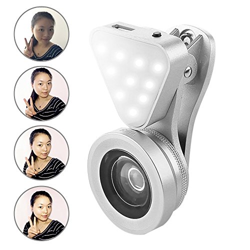 Bundle of 0.4X - 0.6X Wide Angle 10X Macro Clip-on Lens w/ Built-in Beauty Charm Enhancer Selfie Adjustable LED Light for iPhone Windows/Android Smartphones