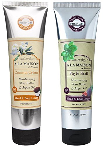 A La Maison Hand & Body Lotion 2 Pack, Fig & Basil and Coconut Creme, 1 tube of each