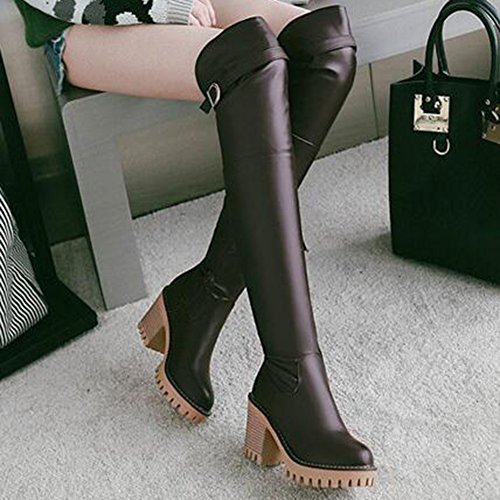 Binding : Apparel Product Description The pair of right shoes can make all the difference. The boots season comes. A pair of long boots is a must-have for a lady who want to be impressed in the crowed. If you're trying to get boots that will send a message with your every step, there's no finer footwear to add glamour close to you than these tall boots from Mofri. These boots don't whisper; they scream with their distinctive and trendy design. This pair of boots make you stand out in any crowd and are sure to heat things up no matter what you wear with them. The block heels raise your height and giving the shoes a chunky shape that is reflection of the latest trends. These shoes from Mofri is made from top quality vegan synthetic leather. Leave those boring basic boots behind. Make this pair boots as your fashion secret weapon and you'll be able to have some sexy appeal which will be the soul of your everyday ensembles. Order a pair in your favorite color! Can't decide? Why not get more? You'll still pay less than the price you would for a single designer pair elsewhere. We will make you always be on the cutting edge of women' s fashion. Mofri is a legal trademark which has registered in United Stated Patent Trademark Office. All right reserved. 0
