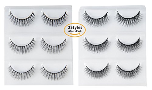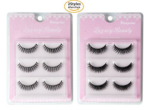Winnprime 3D False Eyelashes Hand-made Dramatic Thick Crisscross Fake Eyelashes Black Natural Soft False Lashes for Makeup (2 Style 6 Pairs)