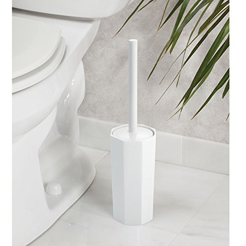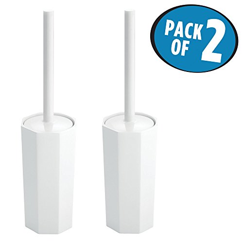 mDesign Octagon Toilet Bowl Brush and Holder for Bathroom Cleaning - Pack of 2, White