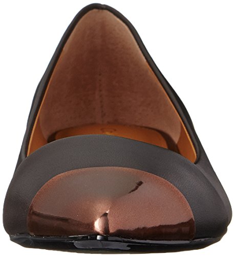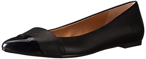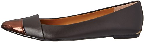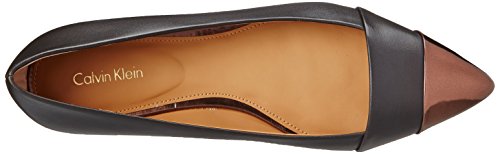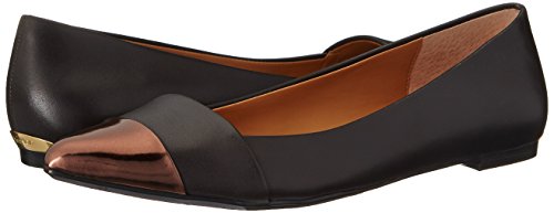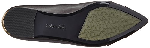 Part of the calvin klein essentials package, goldie is a pointy toe flat with metallic toe cap and gel pod insert for added comfort.