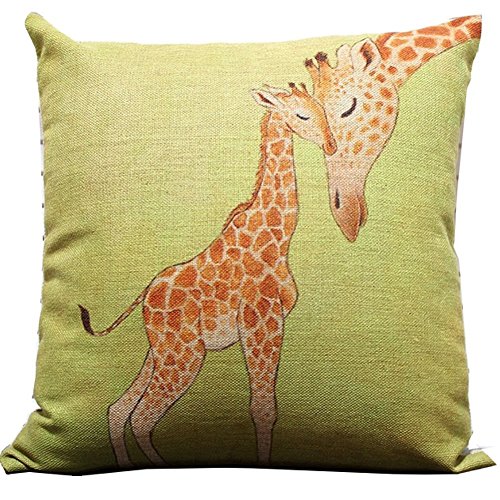 Giraffe and Its Mother Throw Pillow Case Decor Cushion Covers Square 1818 Inch Beige Cotton Blend Linen (Multi-color)
