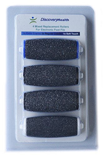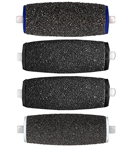 Set of 4 Interchangeable Replacement Pedi Roller Heads: 1x Extra Coarse, 2x Regular Coarse, and 1x Soft Touch - fine coarse.