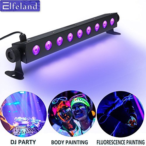 Black Light Bar, Elfeland 27W 9LED UV LED Bar Black Light Fixture Metallic Blacklight Disco Light Stage Light for Glow Party UV Body Paint Holiday Disco DJ Poster Tapestry