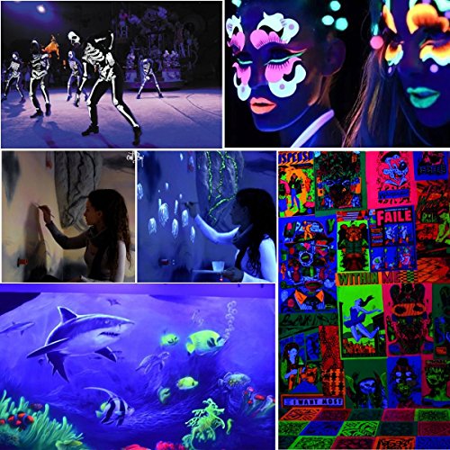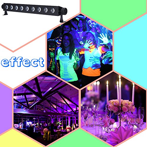 - 【WIDE APPLICATION】The UV LED Bar Black Light creates awesome effect with fluorescent body paints and ink, balloons, candles, cosmetics, bubbles, sticks and wall stickers glow in the dark. Also be widely used in bands, clubs, dance, performance stage, theatrical productions, DJ events and mobile light show.