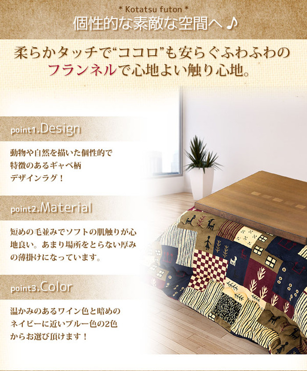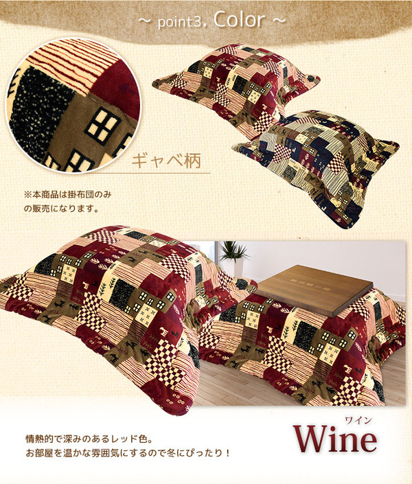 適合こたつサイズ:幅75~80×奥行105~120cm