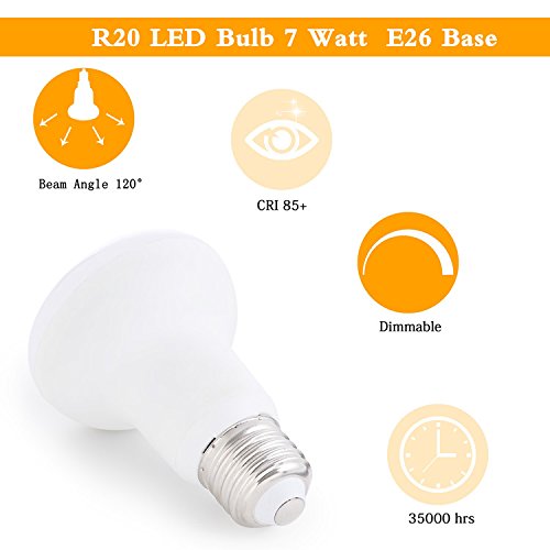 Hight Bright R20 LED Bulb,LED Dimmable BR20 7W (70 Watt Equivalent) Daylight White (5000K),Damp Rated,Indoor/Outdoor Floodlight LED Bulbs Medium Base (E26) (Pack of 6)