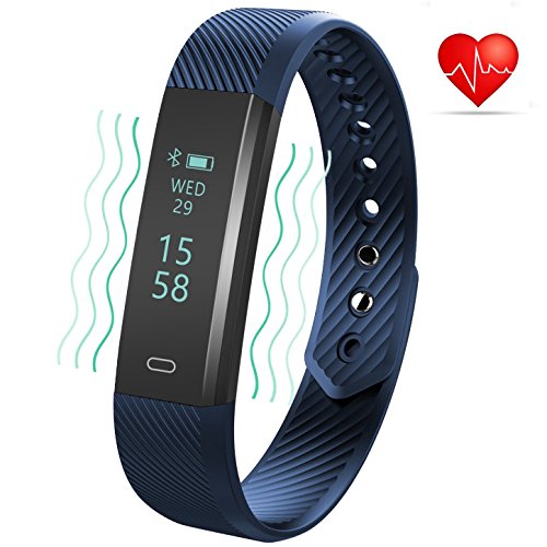 Three-T Fitness Tracker mit Herzfrequenz Monitor Bluetooth 4.0 Wasserdicht Smart Wristband Armband Sport Schrittzahler mit Sleep Monitor / Step Tracker / Kalorienzahler fur Android