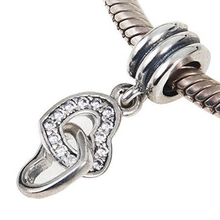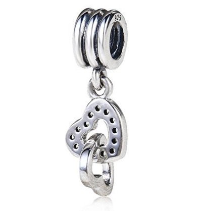 Heart linked to Heart Dangle Charm - Pendant Beads - Fit for DIY Charms Bracelets