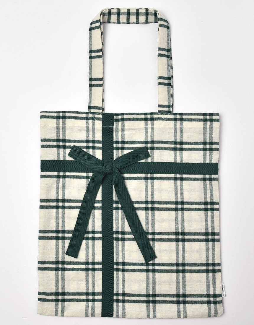 With a tote bag with a ribbon that imaged a gift box!